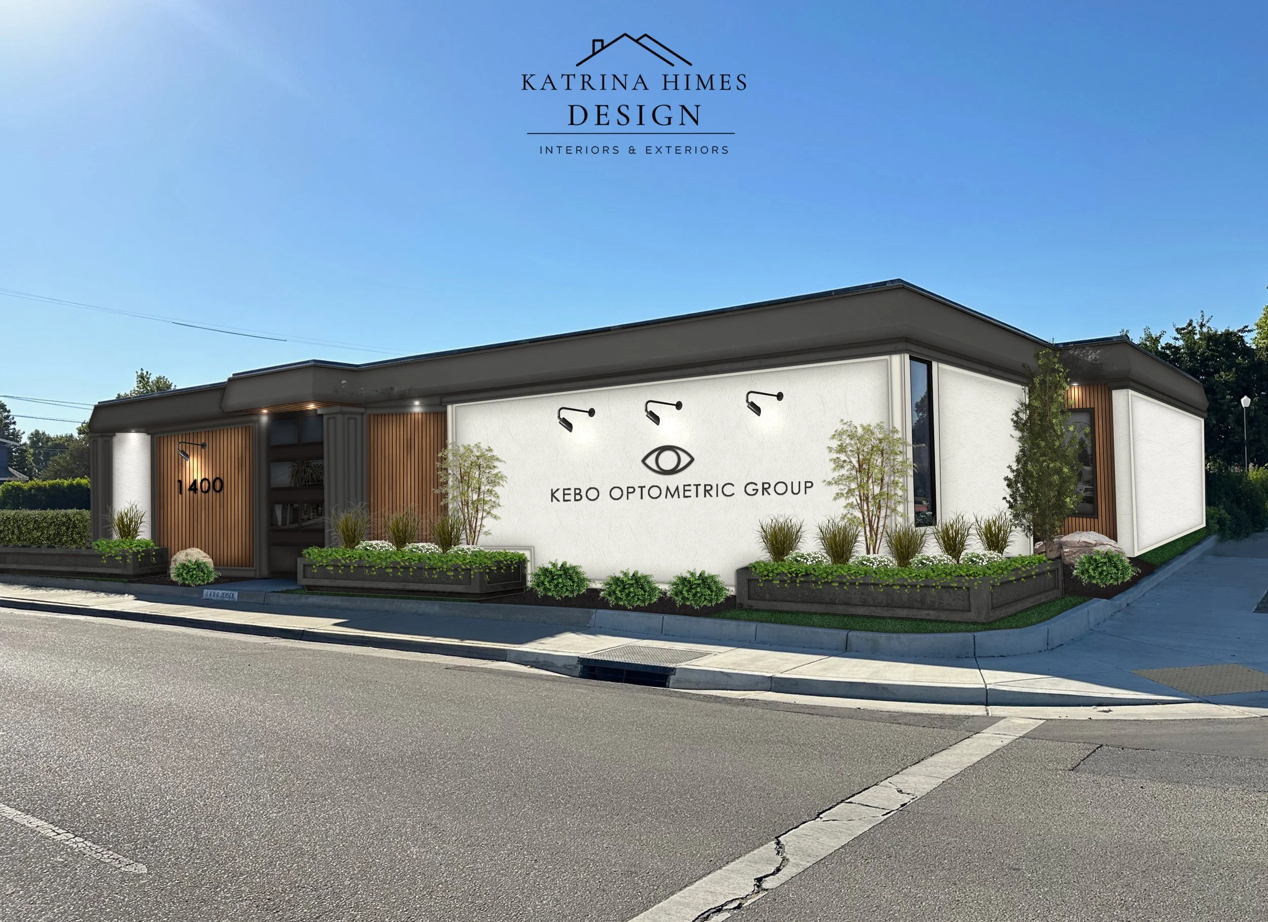 Explore a collection of commercial and business exterior design projects created by Katrina Himes Design. These projects showcase thoughtful exterior transformations through cohesive paint palettes, modern materials, architectural updates, and realistic design renderings. From office buildings to small businesses, each design plan is carefully developed to enhance curb appeal, create a strong visual presence, and elevate the overall look of the property.